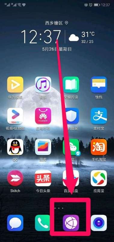 1、打开手机,(这里以华为荣耀9i手机为例),找到手机里面的浏览器点击进入;