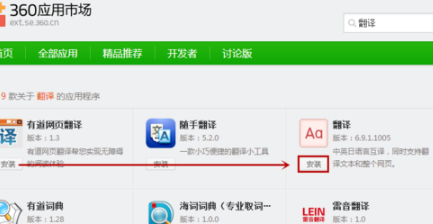 选择一个翻译应用软件,点击安装,安装成功之后,此应用就会显示在扩展菜单栏列表中,如图。
