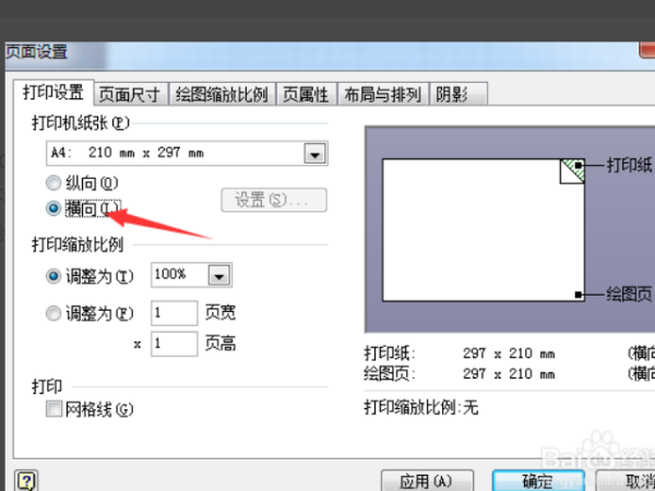 6、在弹出的页面设置对话框中,将纵向改为横向页面。