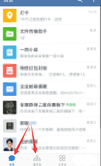 1、手机上打开APP到首页,首页消息切换到通讯录。如下图所示: