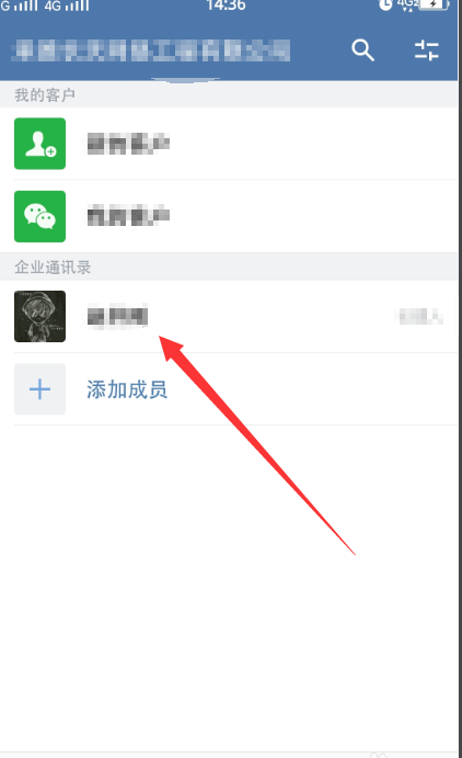 2、企业通讯录下点击需要删除的成员。如下图所示: