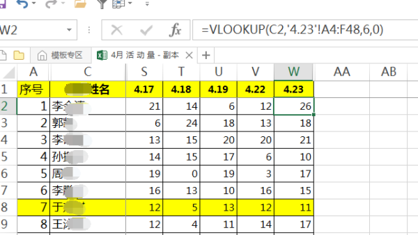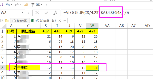 4、在A表修改为=VLOOKUP(C8,'4.23'!$A$4:$F$48,6,0),能正确显示了。则此时A表C8对应B表中A4:F48。