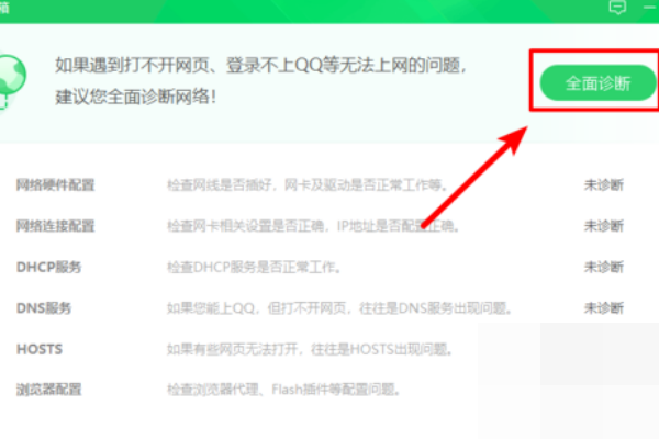 3、点击后,浏览器会自动运行该工具,我们点击工具后面的“全面诊断”的选项。