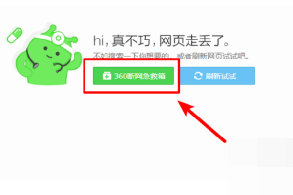 2、如果网络有问题,网页不会显示出来,这时我们点击页面中的“360断网急救箱”。
