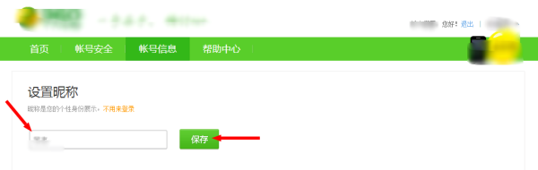 1. 登入360个人中心i.360.cn ,1为登入用户名,修改显示昵称点2修改昵称。
