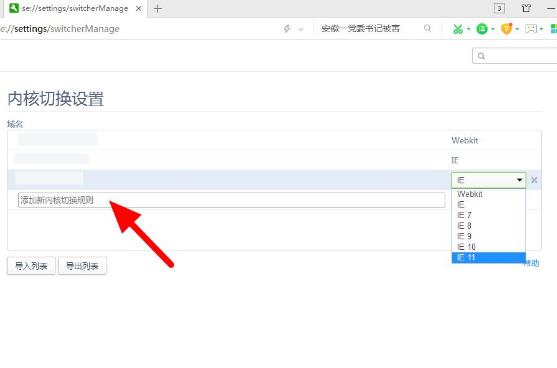 7、设置某个网址,选择IE版本,这样这个网址默认使用兼容模式。