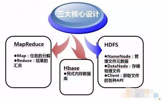 (2)Hadoop的核心是MapReduce(映射和化简编程模型)引擎,Map意为将单个任务分解为多个,而Reduce则意为将分解后的多任务结果汇总,该引擎由JobTrackers(工作追踪,对应命名节点)和TaskTrackers(任务追踪,对应数据节点)组成。当处理大数据查询时,MapReduce会将任务分解在多个节点处理,从而提高了数据处理的效率,避免了单机性能瓶颈限制。
