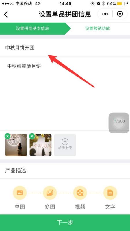 1、用目前比较火的群团购接龙小程序发布设置产品如下