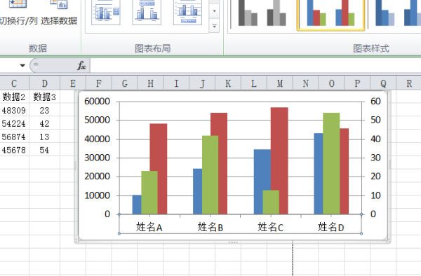点击【确定】后,得到默认数据和样式的簇状柱形图。