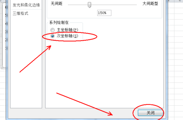 3、选择“次坐标轴”,然后点击确定返回EXCEL即可。