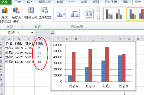 excel柱状图有三个数据列,其中两列数据相差很大,几万和几百万的差距,使用次坐标轴即可同时用柱状图展示。