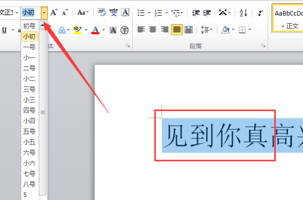 3、在该WORD文档里面输入需要的文字,然后选中该文字点击上方的字体后面的数字可以选择字体大小。