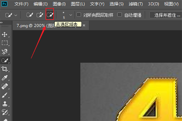 4、如果发现4里面的小三角,没有选到,可以使用属性栏上面,“减选那个笔"。