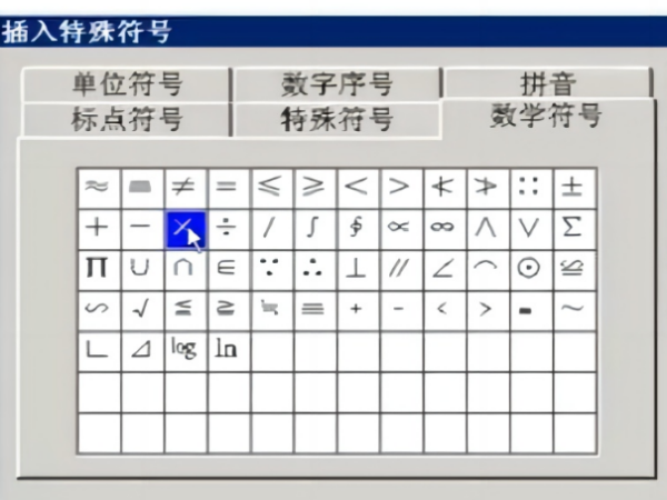2、插入图标窗口中,选择“×”的图标,点击下方“插入”按钮。