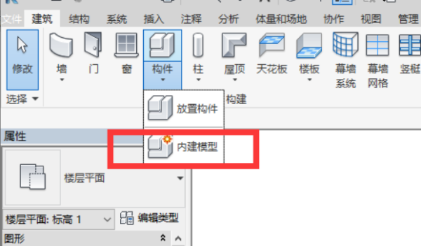 1.新建建筑样板—建筑选项卡—构件—内建模型。