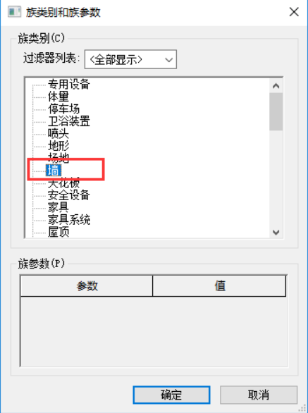2.选择“族类别”为墙,并命名为“剪力墙”。