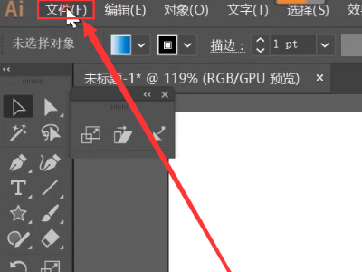 1、首先在电脑中打开Ai软件,找到Ai页面左上角的文件,用鼠标左键单击左上角的文件,会弹出一个新的列表。