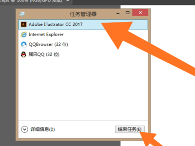 1、首先按住“ctrl+alt+delete”组合键,选择任务管理器,然后点击未响应的软件Adobe illustrator cc 2017,再点击“结束任务”关闭未响应的软件。