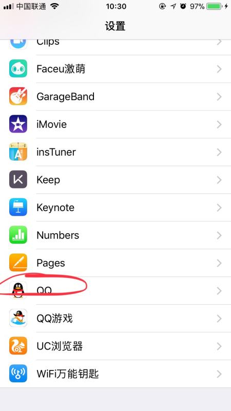 2.往下拉,找到“QQ”,点击QQ。