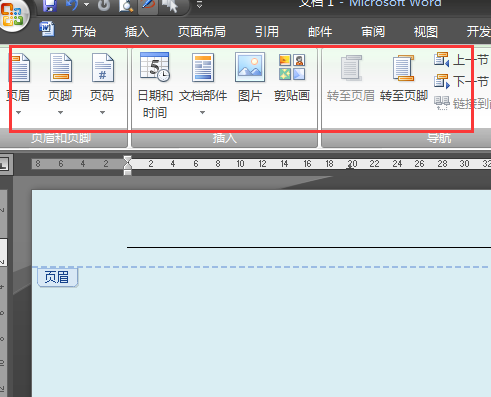 三、通过设计选项卡下的功能来设置页眉/页脚。