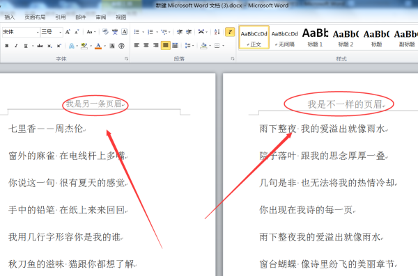 4、返回WORD文档,发现已成功将文档的页眉设置为不一样的页眉。
