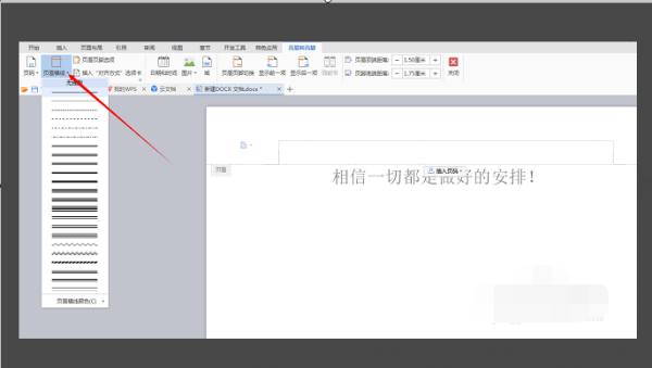 3、可以选择横线,增加美感,在上方输入要制作的页眉,双击点击;