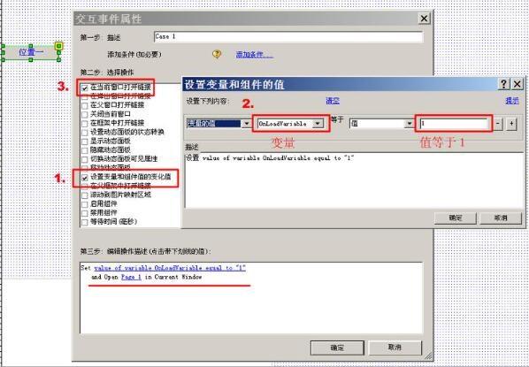 说明:不同页面间的锚点跳转需要借用一下中间变量。即:当要离开该页面到达另一个页面时,先给该变量赋值为1(或2、或3),然后再跳转到另一页面。接下来在另一页面的“OnPageLoad”里加入交互动作,设置判断条件,当变量值等于1时,跳转到这个页面“位置一”处。