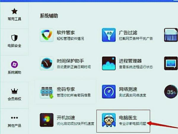 2、下一步,在系统辅助那里选择右下角的电脑医生进入。