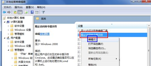 3、这时可以在右侧窗口中看到很多设置选项,双击打开“阻止访问命令提示符”选项;