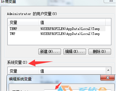 4、选中系统变量中的path,点击编辑按钮,添加path并保存即可。