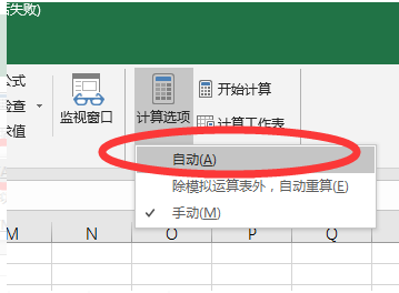 3、接着,在“公式”选项卡中单击“计算选项”,然后选择“自动”选项,如下图所示。