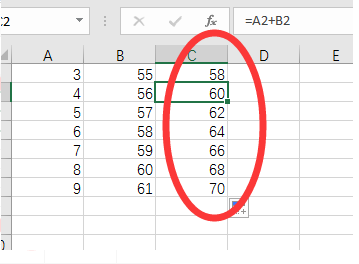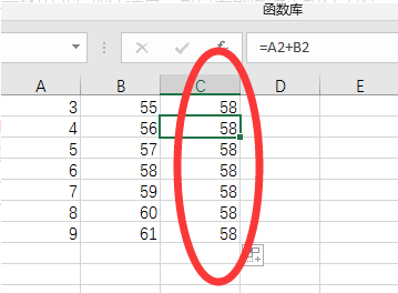 1、首先,在打开的表格中输入计算的数据,然后在C列的单元格中执行加法计算。可以看到此时求和的计算结果不正确,如下图所示。