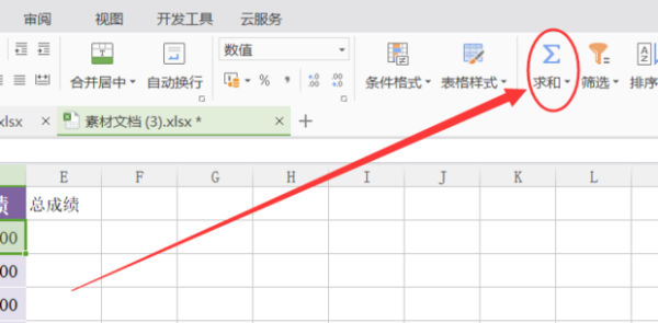 4、然后,在其下面出现的信息栏中点击“求和”的图标,如图。