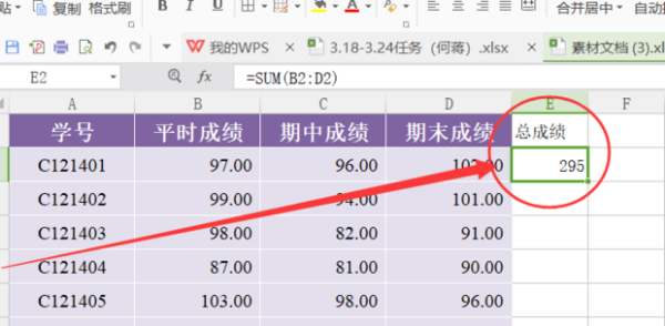 4、最后,页面中的计算公式可以自动计算求和数据并显示正确的结果,问题就解决了,如下图所示。