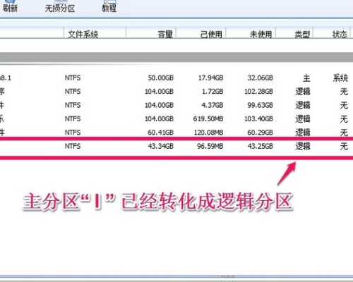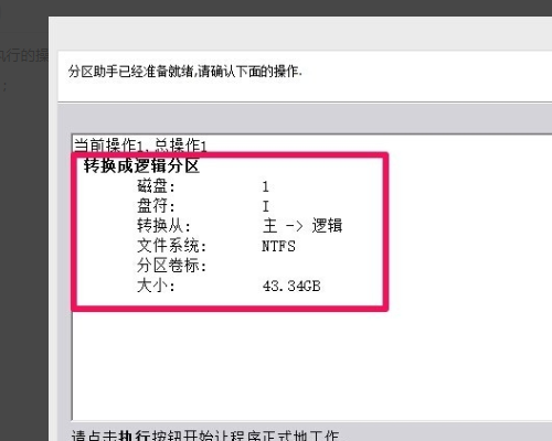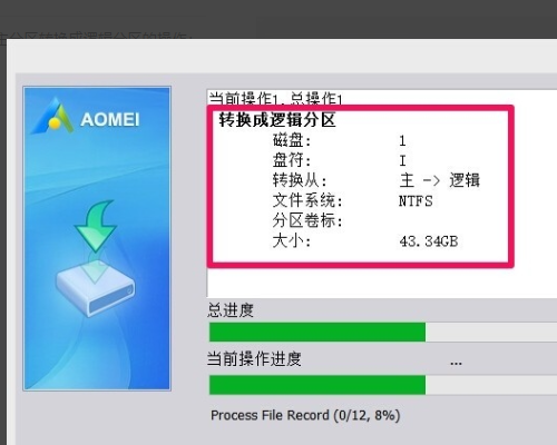 6、正在进行从主分区转换成逻辑分区的操作。