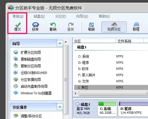 3、回到分区助手对话窗口,我们点击:提交。