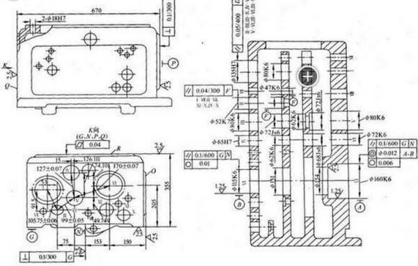 3)工序间公道按排热处理 箱体零件的结构复杂,壁厚也不均匀,因此,在铸造时会产生较大的残余应力。为了消除残余应力,减少加工后的变形和保证精度的稳定,所以,在铸造之后必须安排人工时效处理。人工时效的工艺规范为:加热到500oC~550oC ,保温4h~6h ,冷却速度小于或即是30oC/h ,出炉温度小于或即是200oC 。
