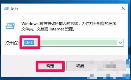 2、然后在弹出的界面内输入CMD并敲击键盘上的回车键。