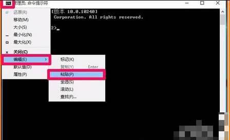 2丶在窗口中输入for %1 in (%windir%\system32\*.dll) do regsvr32.exe /s %1 命令,之后点击上方菜单栏中的编辑->粘贴并按回车。