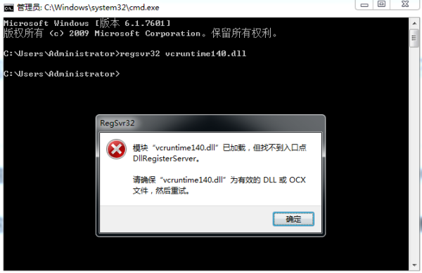 最后,我们再用win键+R键,输入cmd回车进入命令提示符界面,再在命令提示符界面键入[regsvr32 dll文件名]这条命令,点击回车,将这个dll文件在系统中注册一下,然后问题就被解决了。