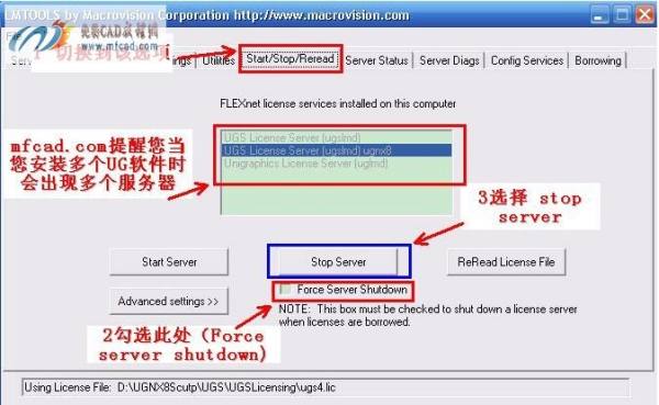 6、UG10.0许可证,先执行停止,然后再保存,其顺序如图上所指示。