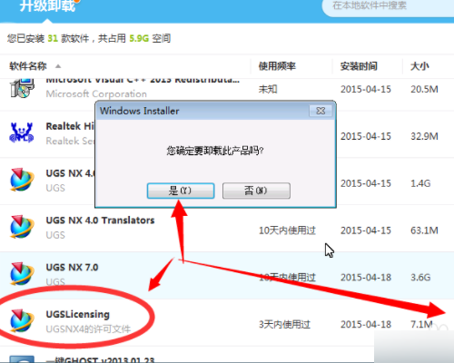 2、在执行卸载UG7.0许可证的的时候,其会提示所下图中的信息,电脑在重启后,其会清除UG7.0许可证的所有相关文件。