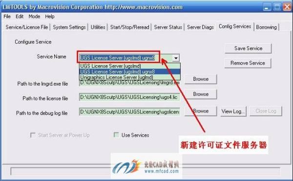 2 多个版本的许可证服务器,容易冲突,所以这里我们要新建一个许可证文件名,比如这里的为:UGS License Server (ugslmd) ugnx8直接在service name 里面输入即可。