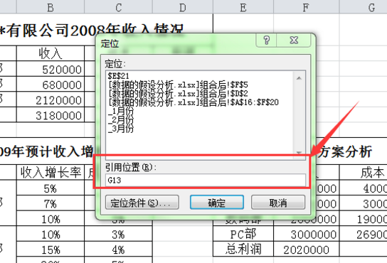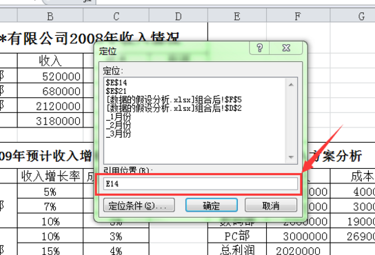 3、在对话框的“引用位置”处输入要定位的单元格名称,单击确定按钮即可定位到指定的单元格中。