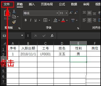 1、打开excel的表格,先点击“文件”菜单,并单击。