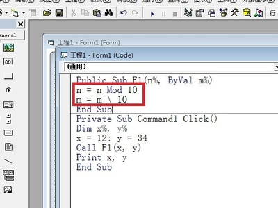 4、双击“调用函数”命令按钮,进入代码编辑窗口,输入如下代码。