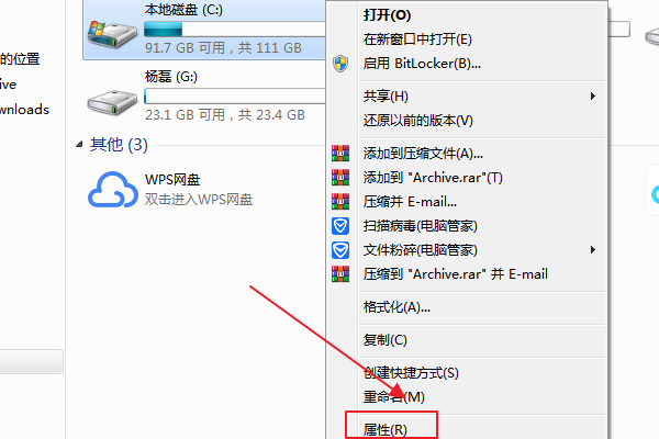 2、在计算机窗口中,选择需要清理的磁盘,例如C盘,使用鼠标右键点击,选择“属性”: