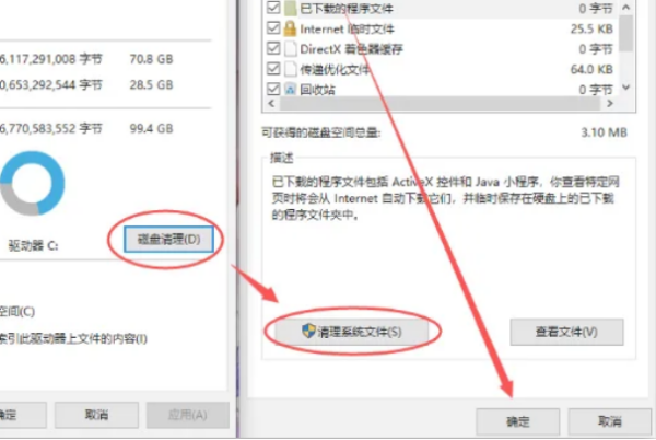 2、打开新的面板后,点击磁盘清理,先选择清理系统文件,清理完成后,勾选要删除的文件,点击确定,就可以删除了。