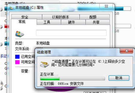 3,等待磁盘清理工具搜索磁盘中可以清理的文件。