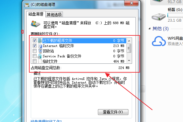 4,在磁盘清理界面,勾选需要清理的项目,点击“清理系统文件”。